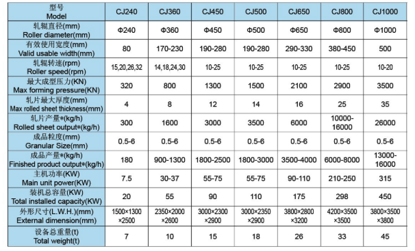 CJ系列干法輥壓造粒機(jī)是采用干法擠壓工藝技術(shù),對含水量<10%的粉狀物料進(jìn)行壓縮成片,再經(jīng)過破碎、整粒、篩分工藝,使片塊狀物料變成符合使用要求的顆粒狀物料。干法輥壓造粒主要是靠外部加壓方式,使物料強(qiáng)制通過兩個(gè)相對旋轉(zhuǎn)的輥輪間隙,壓縮成片。在輥壓過程中,物料的實(shí)際密度能增大1.5-3倍,從而達(dá)到一定的強(qiáng)度要求。